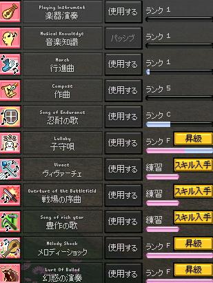 でもほとんどはINT目当てなどステータスをメインでスキル上げる人が多いのかなーと思うと結局吟遊詩人という職業はメインにはなれないような気がします